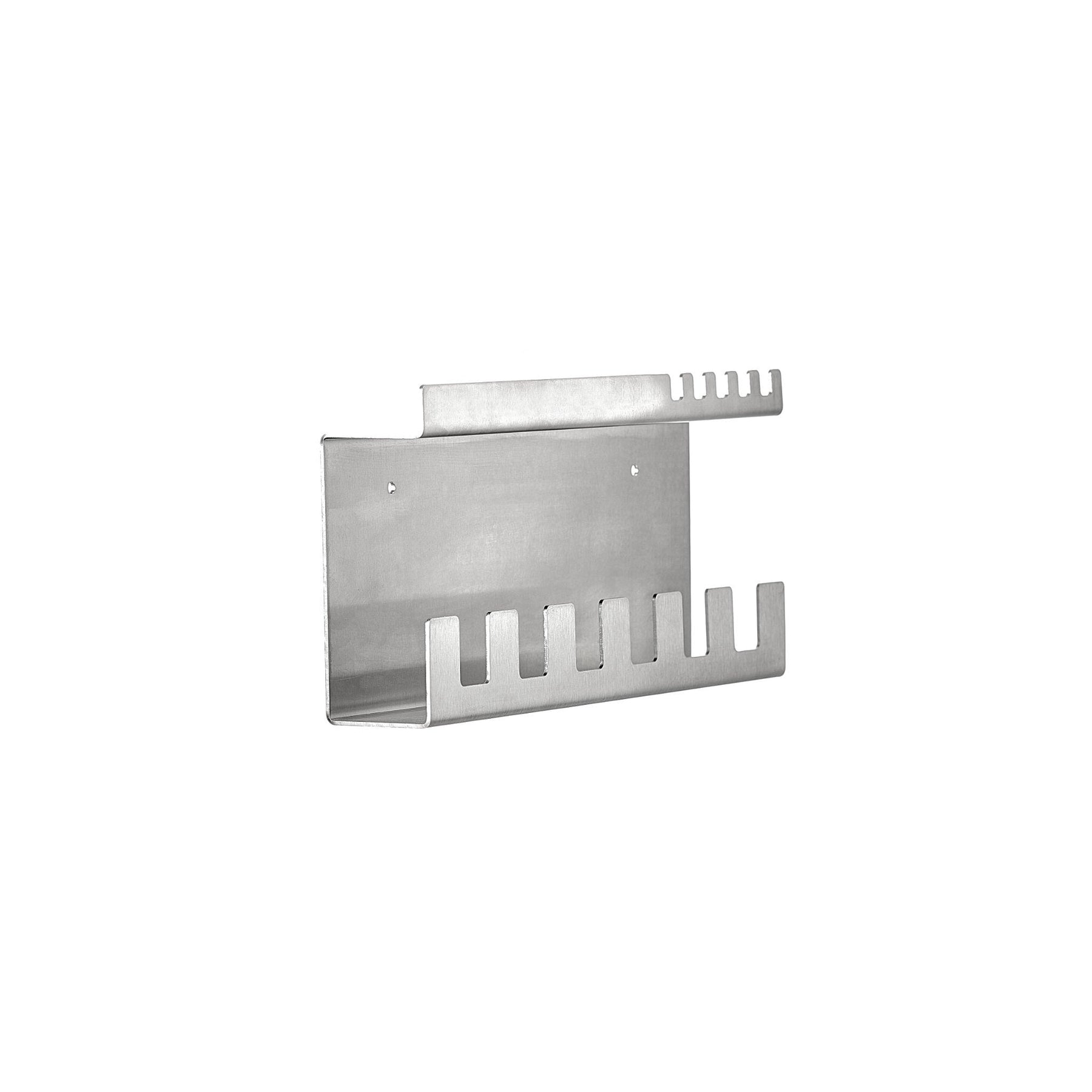 Stainless steel organised shelf, featuring a modern design suitable for industrial or home use