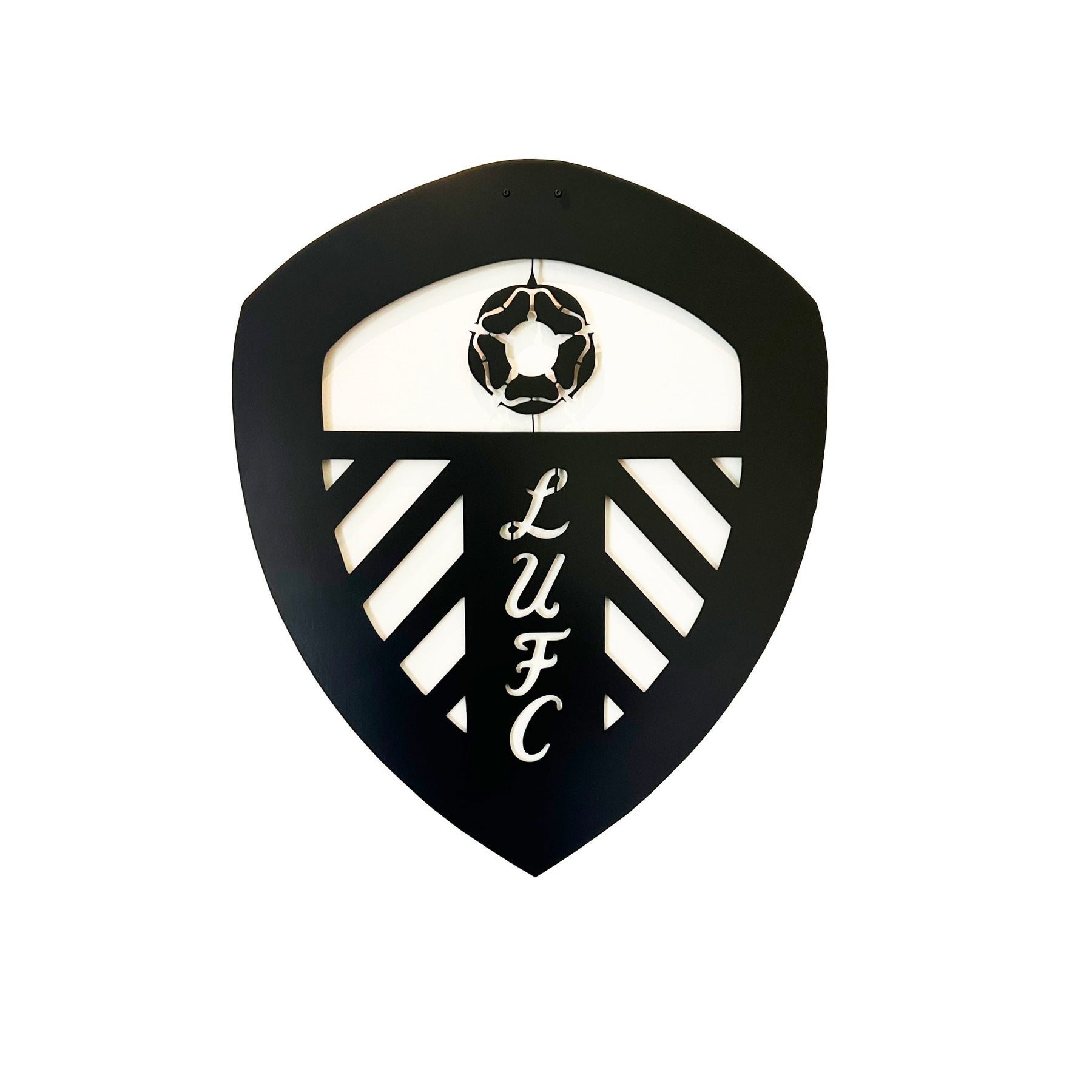 Show your pride for Leeds United F.C. with this striking metal wall art featuring the Leeds United crest. Perfect for fans of the Whites, this wall décor adds a bold, sporty, and modern touch to any space. Whether in your bedroom, office, fan cave, or man cave. Its minimalist silhouette captures the iconic club crest in detail, making it a must-have piece for Leeds United supporters, football fans & sports enthusiasts.